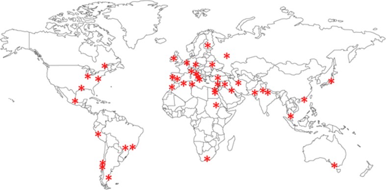 Methods: A survey instrument was designed by the Primary Immunodeficiencies Committee of the World Allergy Organization to collect both structured and semi-structured data on X-linked agammaglobulinemia. The survey was sent to 54 centers around the world chosen on the basis of World Allergy Organization participation and/or registration in the European Society for Immunodeficiencies. There were 40 centers that responded, comprising 32 countries.